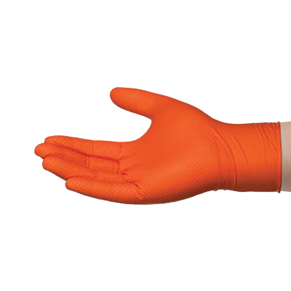 AMMEX® Gloveworks® GWON 8-Mil Orange Nitrile Raised Diamond Texture Powder-free Industrial Gloves